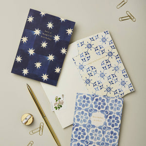 A charming collection of nature-inspired stationery. Perfect for adding some elegance to birthday cards, thank you cards and everyday notes to self. Products include greeting cards, notebooks, market list kitchen notepads, each designed with charming patterns like wildflowers, moon and stars, Classic European tile, watercolor and heirloom-inspired designs.